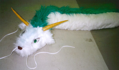 ・・・って私がやった訳じゃないよ(笑) 冬コミを千尋コスでがんばる為に防寒対策でハク竜を作りました。別名[1.5mの白い長い物体」(笑) つくりかけのまま暫く放っといたんだけどιこの日は私がおっかけしているハク様(^^;)がいらっしゃるということだったので、敢えて間に合わせた(苦笑)制作日記参照。 |