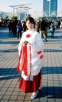 友人にまぜてもらって狐やりだしました。同じ専攻の友人で、好きな世界観も近くてそれで混ぜてもらったのです。この友人ら(当時二人)は別にレイヤーでもオタクでもなく(オタク文化は知っていたが)←基本的にそういう人らでやってます。単に狐好きでやりたいなーってのではじめたそうです。この扮装で伏見稲荷にも行き、おばあちゃん達に拝まれたとか。うちの大学案内にも載っている、今や学祭名物の狐行列です。 |