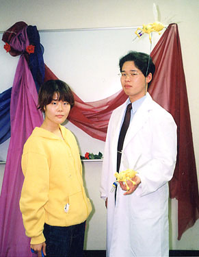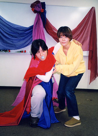 | 神谷先生と♪ はじめ、先生は後ろに写ってる、コススペースに主催の方々が設置しておいた小道具の薔薇を差し出して下さったのですが、私はどうすれば良かったんでしょう…(笑) この二人といえばアニメでの「神谷なんかと一緒にするな…っ!」という切羽詰った御手洗さんのセリフ、何かされたんか…?と気になりません??(笑)イヤ純粋にですよ…。 |