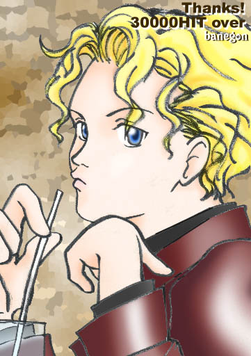 バネゴンさまのサイト(プチ四次元屋敷)の30000hitオーバー(!)記念画像をお持ち帰りさせて頂きましたvそんな記念にみたらいさんなんてっvV 瞳がとてもキレー…vvこういうきれいな絵を見るとPC画いいな〜って思います。 30000hitなんて本当すごいっ!(><) そこまで沢山の方が通っていらっしゃるってのはやっぱりあれだけのコンテンツのどれもを常時楽しめるよう更新なさってるからでしょうね…☆ 私も出来る範囲で精進せねば。とりあえず家パソ…。