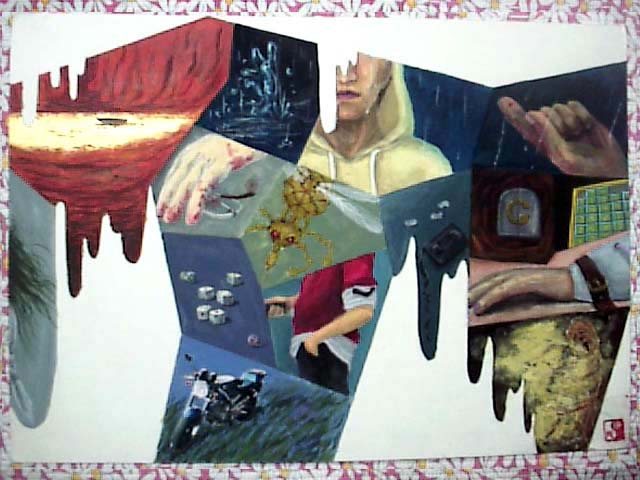 何年か前に描いた絵です。 アクリル画。一時期こういうマンガを元にした本気の絵、ってのが描いてみたくって。 しかし汚い色使いです。その当時の画風がこんなだったんでι 同じコンセプトでまた描いてみようかな… 因みにバイクは流石に写真コラージュです。 暇ができたら細部アップ見れるようにするかも。